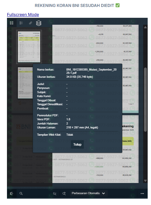 Jika kalian mau lihat metadatanya kalian bisa klik titik tiga dipojok kanan bawah dan kalian bisa samakan hasil edit dan sebelum diedit.. saya jamin 100% sama ya bos karena disini kami menggunakan tools untuk edit rekening koran yang pastinya super canggih dan khusus di gunakan untuk rubbing rekening koran.